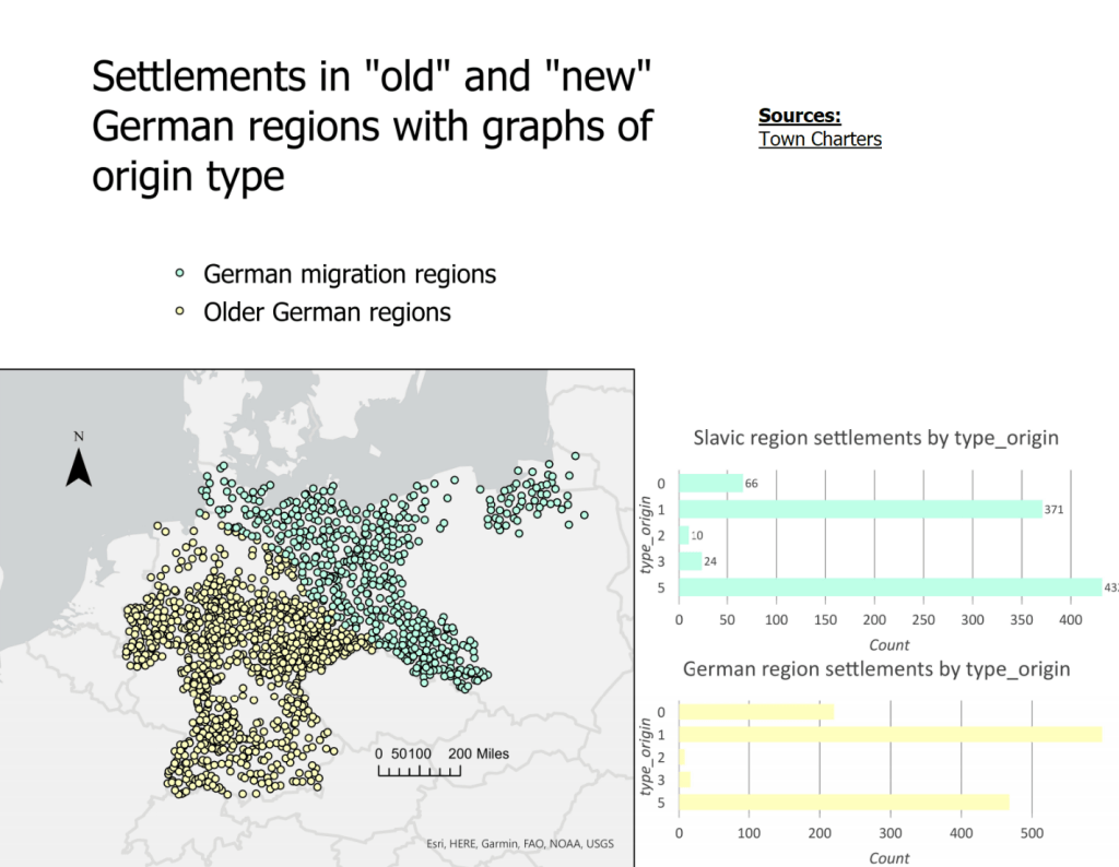 It would be natural, then, to situate my project in such a legitimizing field as the current existential crisis of the European Union. But that is not the goal with which I have set out for this project, in large part due to my unfamiliarity with issues in the EU beyond surface-level political-philosophical debates. This project will be working mainly with data on city and market establishment in pre-capitalist and pre-democratic times, but I would like to use it as a precursor to understanding connections between the HRE and the EU. I have no doubt such a connection can be made, since the patterns of development and population shifts that I will attempt to divine in this project are a key part of the history of Germany’s political development—just as patterns of westward settlement and population “relocation” across the US or China still play key roles in each country’s recent and present issues.
