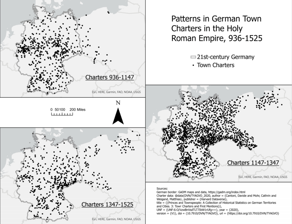[3] Davide Cantoni, Cathrin Mohr, and Matthias Weigand, “Princes and Townspeople: A Collection of Historical Statistics on German Territories and Cities. 3: Town Charters and First Mentions” (Harvard Dataverse, 2020), https://dataverse.harvard.edu/dataset.xhtml?persistentId=doi:10.7910/DVN/TYAGVO. 2